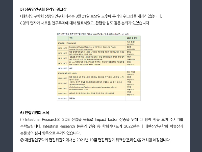 대한장연구학회 2021년 8월호 뉴스레터