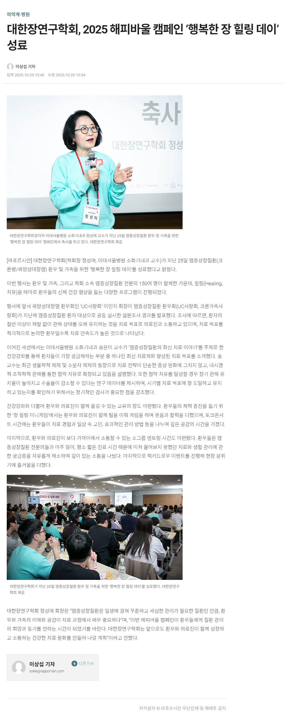 대한장연구학회 보도자료 날짜 : 2025-10-29 조회수 : 59