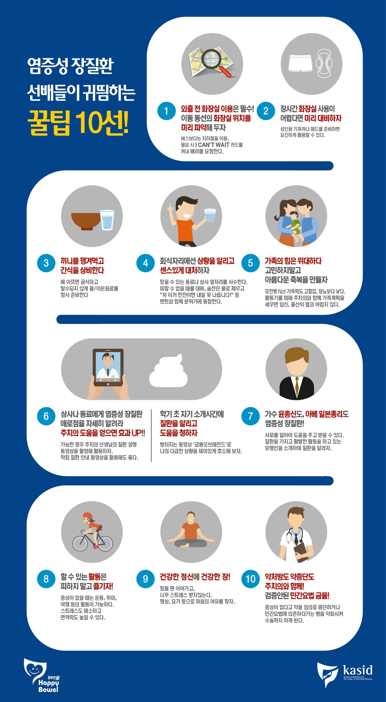 염증성장질환 환우들을 위한 안심여행 가이드와 야외활동 꿀팁 10선 대한장연구학회 작성일 : 2016-05-25 조회수 : 7,107 다가오는 여름 휴가철을 대비하여 염증성 장질환 환우를 위한 안심여행 가이드와 염증성 장질환 선배들이 귀띔하는 야외활동 꿀팁 10선을 소개드립니다. IBD 환자 안심여행가이드.pdf (다운로드 : 1,386회) IBD 선배들이 귀뜸하는 꿀팁 10선.jpg (다운로드 : 787회) 목록