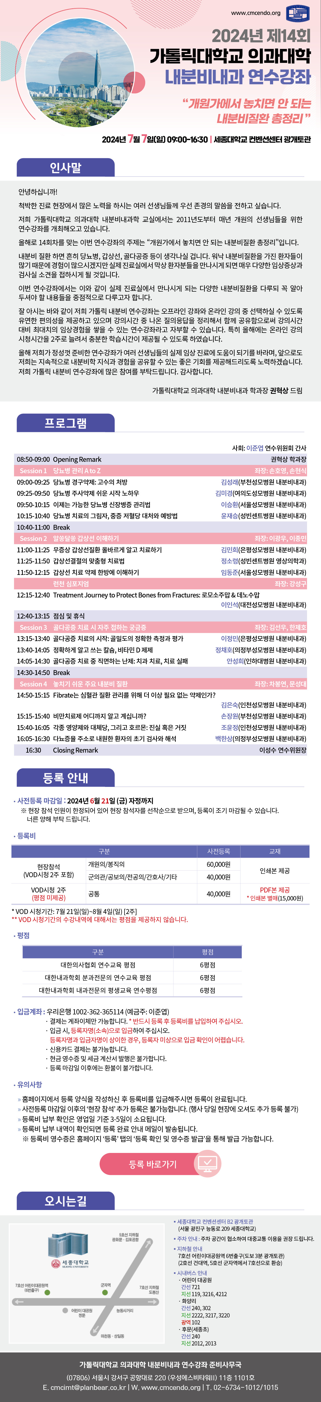 학회 외 공지 2024년 제14회 가톨릭대학교 의과대학 내분비내과 연수강좌 대한장연구학회 작성일 : 2024-04-30 조회수 : 683 2024년 제14회 가톨릭대학교 의과대학 내분비내과 연수강좌 안내 2024년 제14회 가톨릭대학교 의과대학 내분비내과 연수강좌 홍보 공문 (1).pdf (다운로드 : 420회) 가톨릭의대 내분비내과 연수강좌 뉴스레터.jpg (다운로드 : 401회) 목록